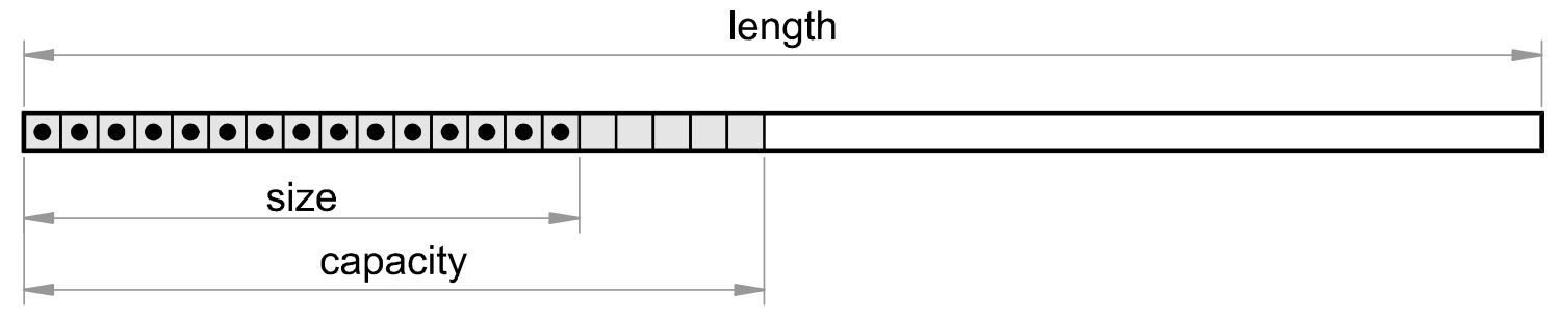 This allows the software to work efficiently with vectors that are not entirely filled. Such vectors are very common in engineering as is the load vector in finite element analyses. However, Calcpad reserves a little bit more memory above the size, that is called "capacity". This is because resizing a vector is computationally expensive. Since we normally assign elements in a loop, in this way we avoid resizing the vector on each iteration.